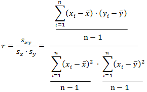 Warum sollte es auch. Laut Berechnungsformel bleibt r völlig unbeeinflusst davon, welches Merkmal als x- und welches als y-Merkmal aufgefasst wird. Es ändert sich weder der Korrelationskoeffizient selbst noch sein Vorzeichen, sehen Sie selbst: