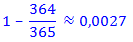 Lautet die Wahrscheinlichkeit, dass in einer Vorlesung mit 40 Studenten ein Student Geburtstag hat, wie folgt?